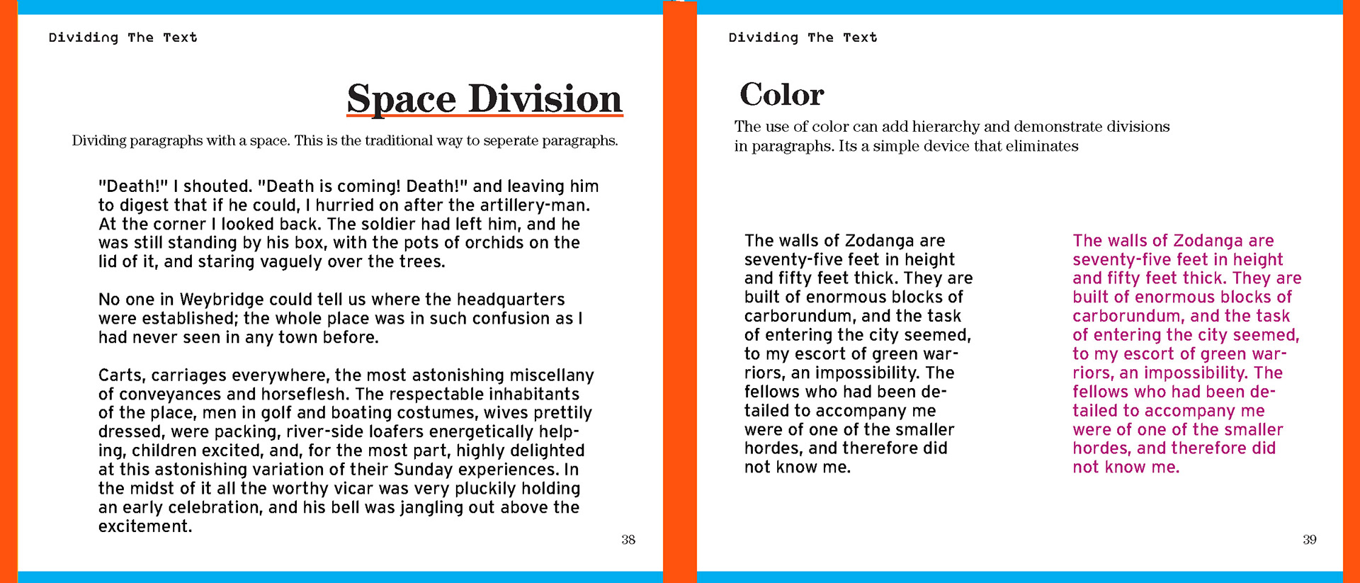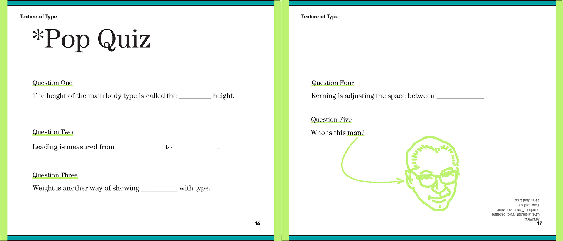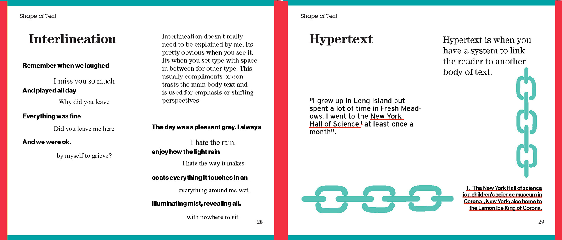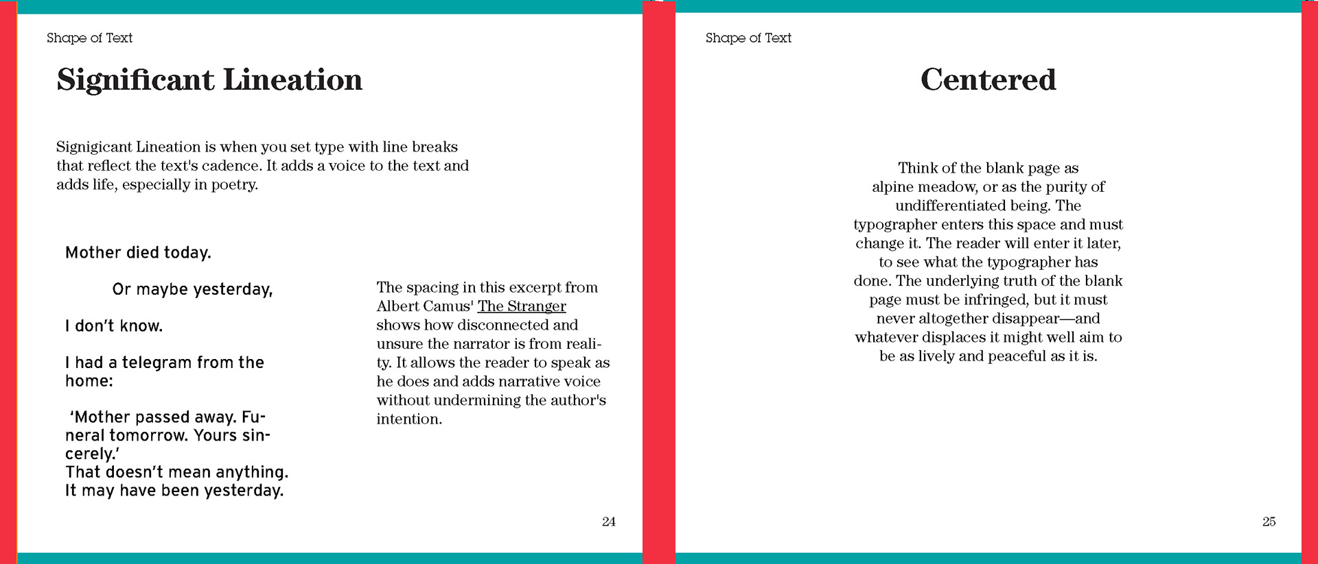 For my Advanced Typography class I was tasked to create a book using existing type about typography. I had creative control over color and font choice.